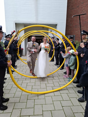 Am 11.10.2025 konnten die Kameraden der Feuerwehr Leopoldshöhe dem Kamerad Florian und seiner Friederike zur Hochzeit an der Kirche in Bechterdissen...