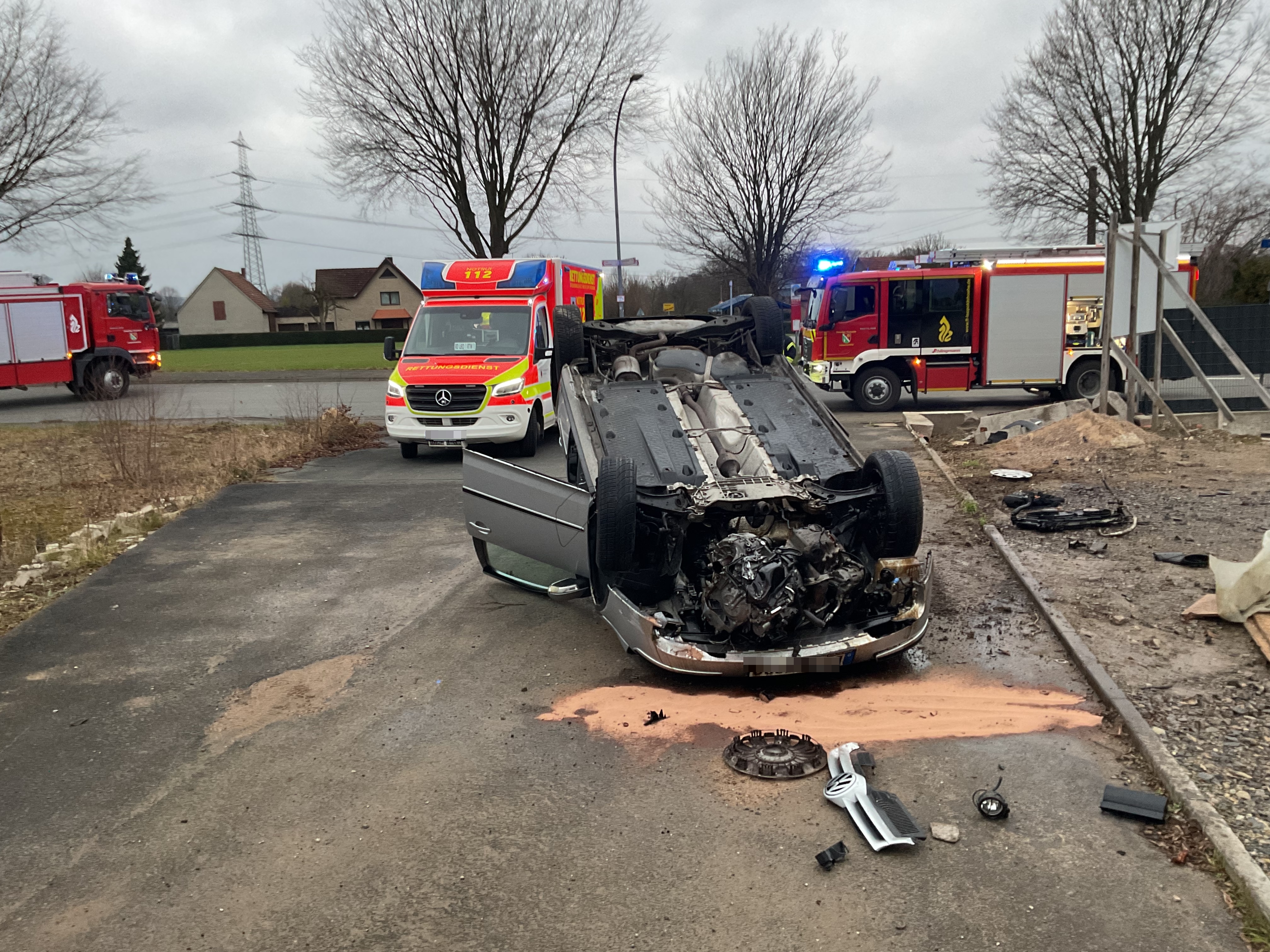 Am Neujahrsmorgen wurden die ehrenamtlichen Kräfte in den Grenzweg nach Bechterdissen alarmiert. Ein PKW kam von der Straße ab und blieb auf dem Dach liegen.