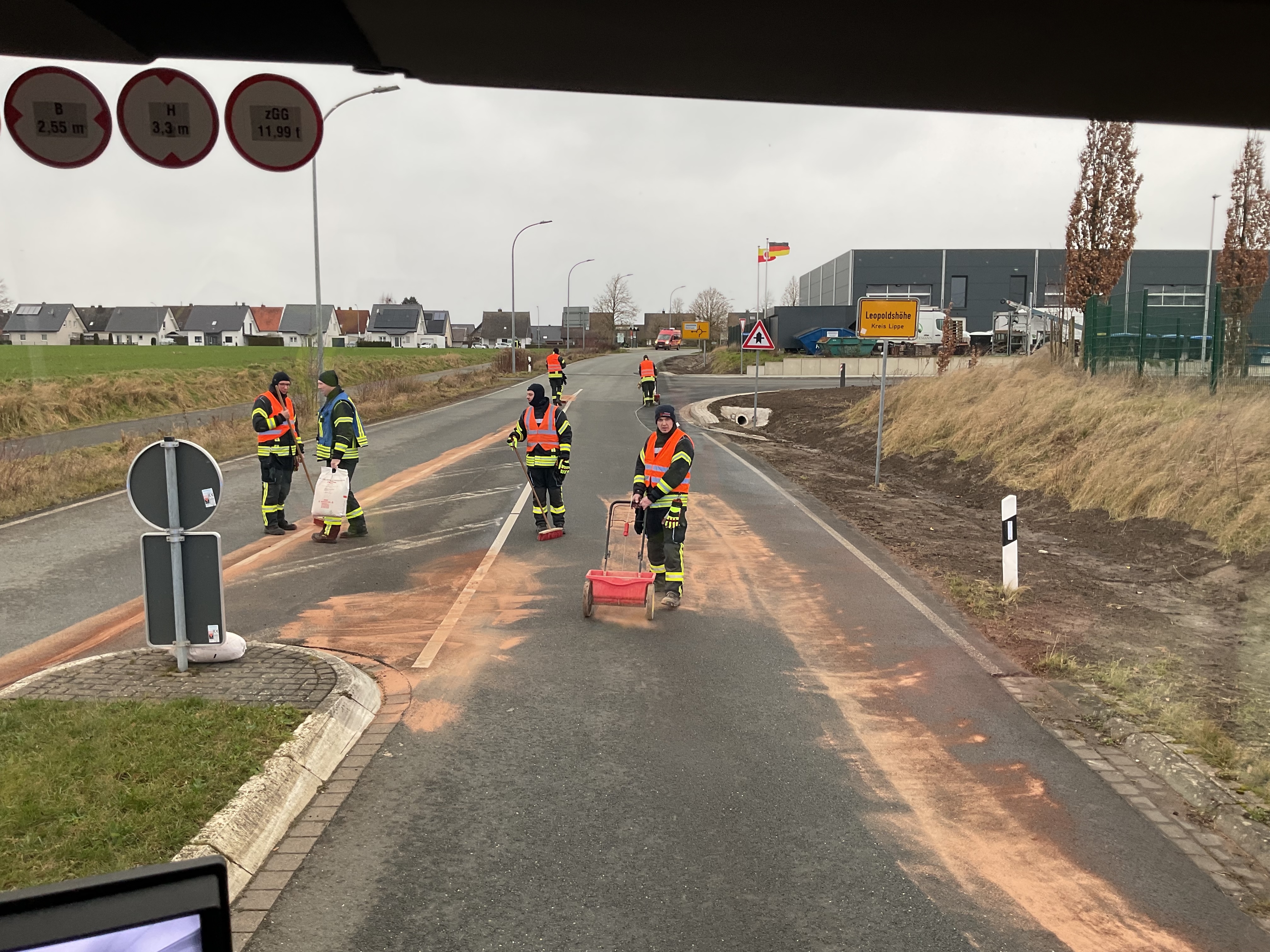 In den Bereichen Hauptstraße, Schötmarsche Straße, Teutoburgerstraße und Windwehe wurden Ölverschmutzungen festgestellt. Die Bereiche wurden mit Bindemittel behandelt und anschließend eingefegt.