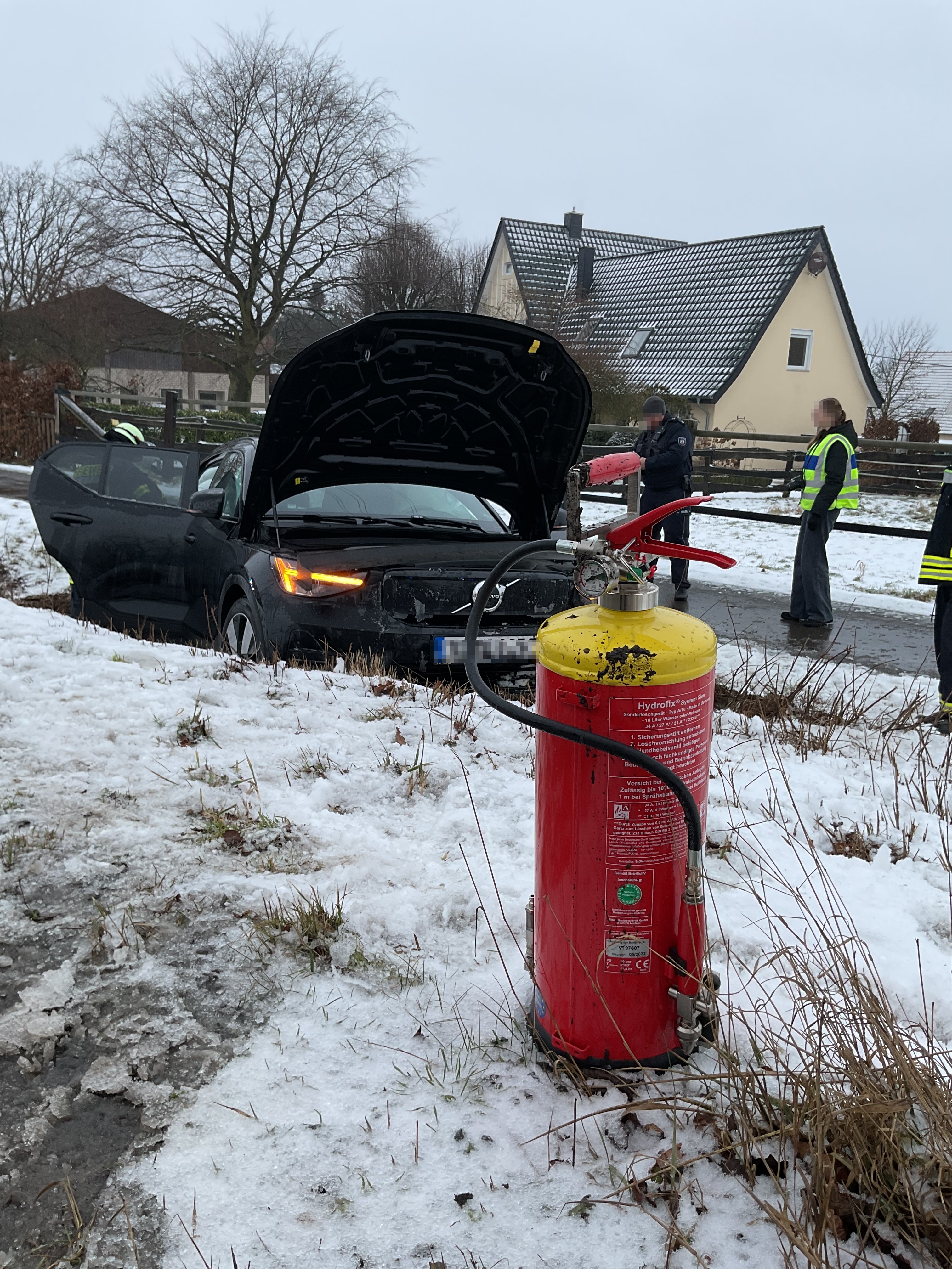 Bei Eintreffen an der Einsatzstelle war keine Person mehr eingeklemmt. Die Fahrerin wurde durch Ersthelfer aus dem PKW befreit und konnte direkt durch den Rettungsdienst betreut werden. Die Maßnahmen der Feuerwehr beschränkten sich auf Absperrmaßnahmen der Einsatzstelle und die Sicherstellung des Brandschutzes. Da es sich bei dem verunfallten Fahrzeug um ein E-Auto handelte wurde der Hochvolttrennschalter betätigt und die Standardbatterie abgeklemmt. Abschließend wurde die Einsatzstelle an die Polizei übergeben.