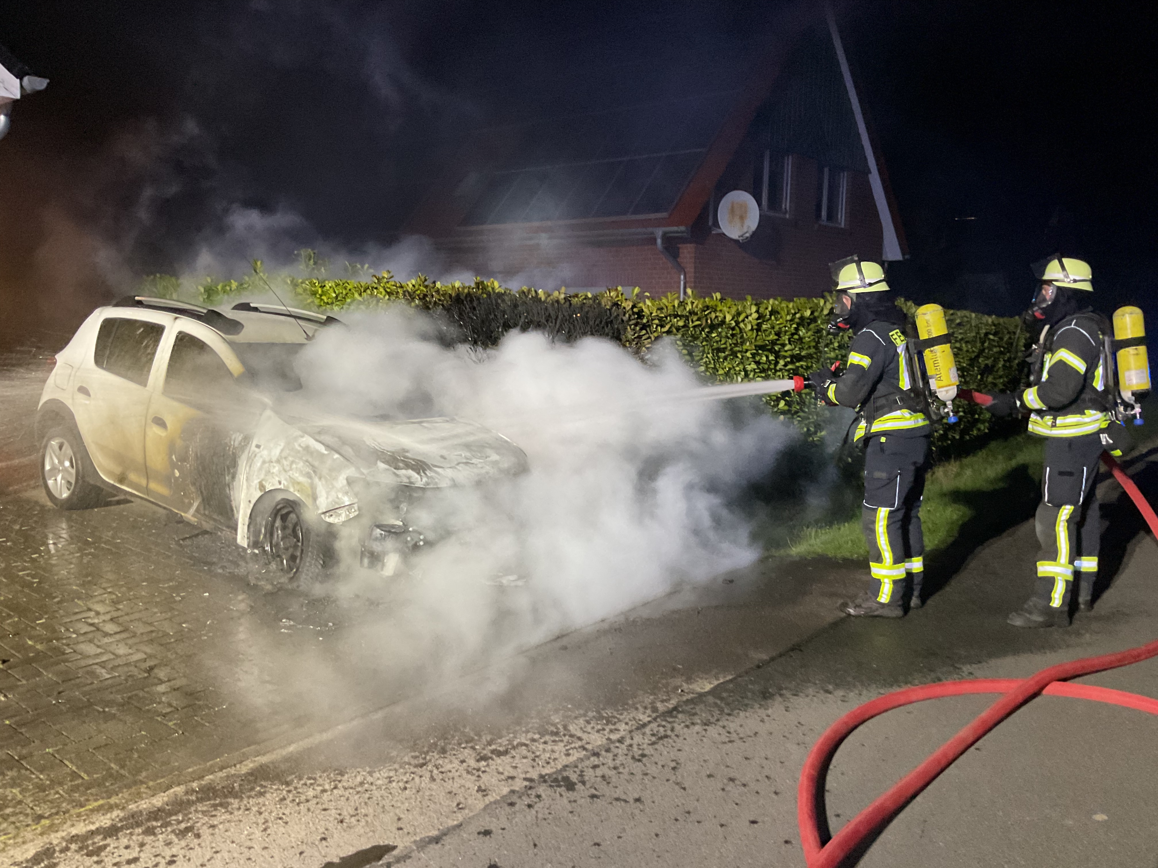 Am frühen Samstagmorgen wurden die ehrenamtlichen Kräfte in die Grester Straße (Asemissen) zu einem brennenden PKW alarmiert.